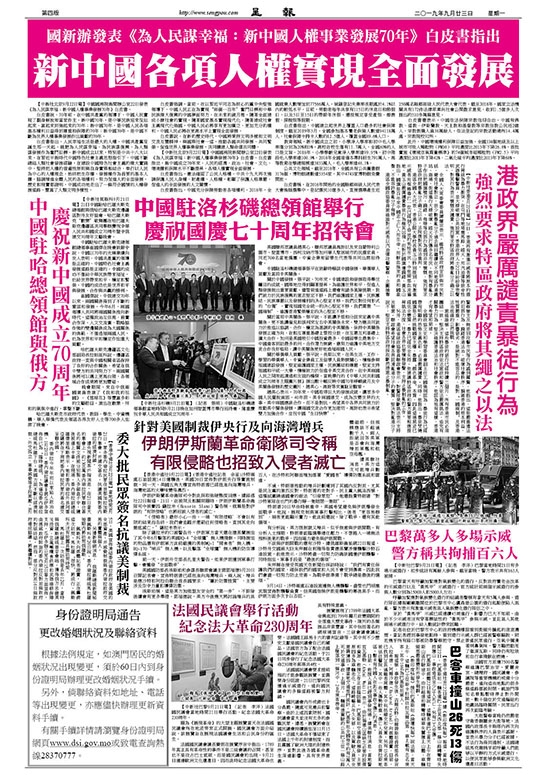 國新辦發表《為人民謀幸福:新中國人權事業發展70年》白皮書指出 新中國各項人權實現全面發展