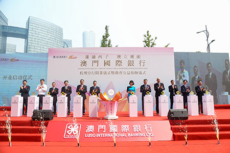 開業儀式當天,中央人民政府駐澳門特區聯絡辦公室經濟部副部長朱宏女士、澳門金融管理局行政委員黃立峰先生、浙江省人民政府港澳事務辦公澳門室副主任姚國文先生等百余位境內外領導嘉賓、同業客戶及媒體朋友親臨現場,共同見證澳門國際銀行杭州分行正式開業的重要時刻。