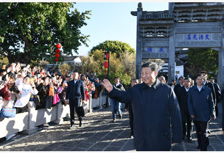 【中新社北京1月19日電】春節前夕,中共中央總書記、國家主席、中央軍委主席習近平赴雲南考察,看望慰問基層干部群眾。