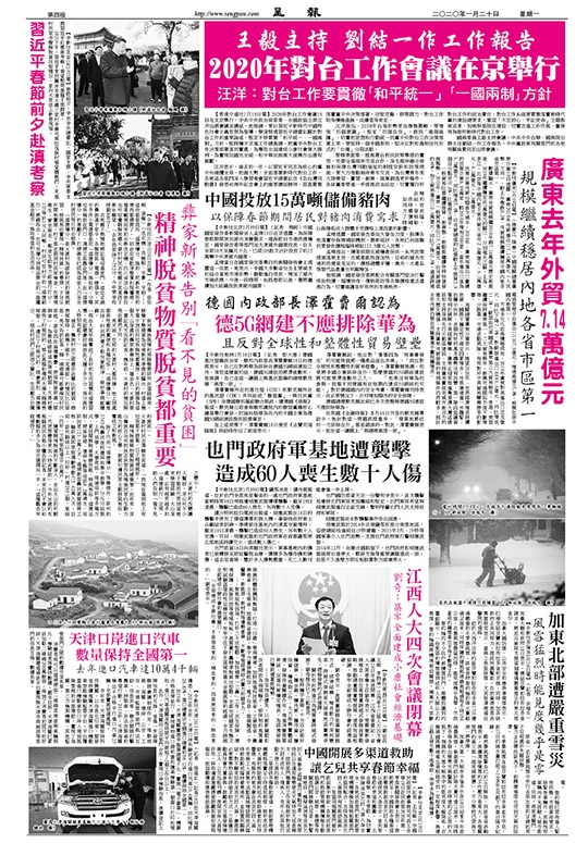 王毅主持 劉結一作工作報告 2020年對台工作會議在京舉行 汪洋:對台工作要貫徹「和平統一」「一國兩制」方針