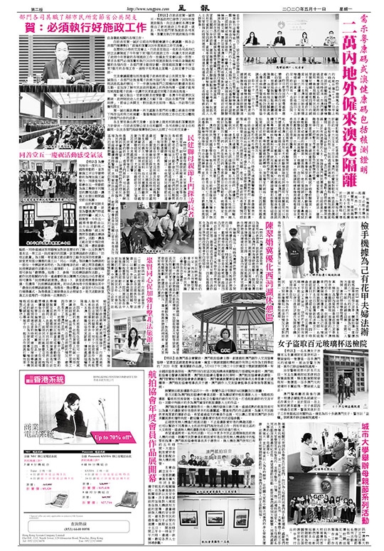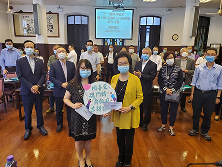 由於新冠肺炎疫情的影響,該堂為響應澳門特區政府呼籲,減少人群集聚,今年五一國際勞動節由以往外出活動模式改為舉辦「網上有獎問答遊戲及標語創作」活動,讓員工能在家中預防疫情之際,還能動動腦筋,同時通過回答問題增加對該堂歷史的了解,以及對澳門基本法、勞工法、抗疫資訊的認識。該堂標語創作活動以「防疫正能量」為主題,希望員工能在創作之餘多加深防疫意識,該堂更有部分獲獎的員工以「同心、同善」等詞彙作為標語的一部份,令標語更具特色,為活動增添色彩。網上問答遊戲及抗疫標語創作活動共分三個環節:1. 正確答對全部30條問題即可參加「歡樂獎」抽獎;2. 參與「抗疫標語創作活動」,創作抗疫相關的內容,通過審核後以隨機方式抽出10名幸運兒即可獲得「抗疫標語創意獎」獎金;3. 該堂值理應邀參與評選,從獲得「抗疫標語創意獎」的10名參加者中投票選出其中「最佳抗疫標語創意獎」得獎者,獎金豐富。該堂於5月9日進行頒獎儀式,為得獎員工頒發獎金及合照留念,是次活動該堂員工及值理們一同參與,反應熱烈。