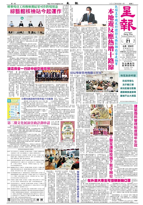 【特訊】《澳門特別行政區公報》昨日日刊登第22/2020號行政法規《建築廢料管理制度》,將於2021年1月17日正式生效(即法規公佈後滿一百八十日起生效)。