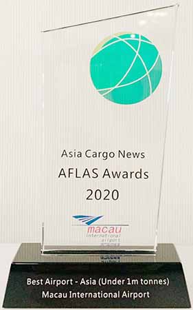 【特訊】由亞洲貨運新聞(Asia Cargo News)舉辦的「亞洲貨運物流和供應鏈頒獎典禮」於2020年11月9日舉行,澳門國際機場再次榮獲「亞洲最佳機場」獎項(機場貨物年處理量在一百萬公噸以内)。