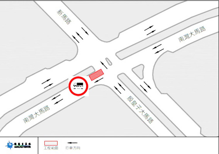 【特訊】澳門自來水將於12月2日(周三)至16日(周三)每日晚上10時至翌日上午7時在南灣大馬路進行水管更換工程。得到市政署核准並經交通事務局協調,屆時南灣大馬路與新馬路交界實施有限度通車,禁止車身長度超過7米的車輛由殷皇子大馬路左轉進入南灣大馬路;18及18B路線巴士需改道行駛,沿途站點不變。請市民及駕駛者留意,如有任何疑問可致電客戶熱線2822 0088查詢。