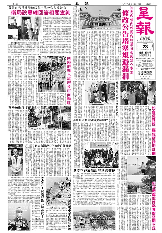【特訊】僑總頤康委員會日前舉辦「慶回歸迎聖誕」聯歡活動。主任韓瑛表示,在全球疫情依然嚴峻的形勢下,澳門歸僑長者能在安全環境中共聚聯歡,來之不易,希望長者持續配合特區政府防疫抗疫絕不放鬆。