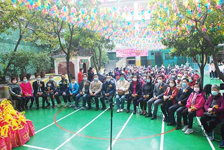 主協辦單位蓮峰學校昨日舉辦「金牛迎新歲、蓮峰暖萬家」派福米儀式,蓮峰廟值理會主席龔樹根和一眾值理、街總會長吳小麗及多位負責人等出席,向到場領取福米的的弱勢問好並送上福包。
