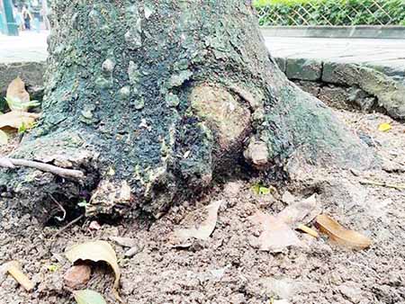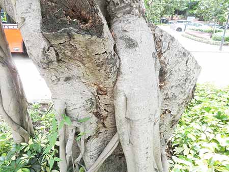 市政署對五株狀況衰弱的路樹進行持續監測救治。分別位於南灣大馬路及西灣街的兩株細葉榕,其主幹木材腐爛,樹冠葉量漸轉稀疏,枝葉僅靠氣根維持供應。