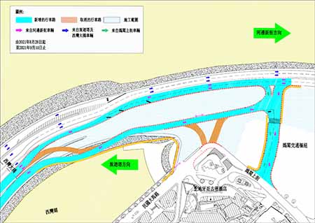 8月28日至9月10日:因取消由媽閣上街及民國大馬路往返西灣湖景大馬路的三岔口位置,車輛須改由媽閣交通樞紐的行車路往返西灣湖景大馬路;9月11日至10月15日:擴闊現有往西灣橋氹仔方向的行車路;10月16日至11月23日:正式取消一段往旅遊塔方向的臨時行車路,車輛由現行西灣湖景大馬路南行線前往旅遊塔方向;11月24日起:增設一條前往旅遊塔方向的行車路。請駕駛者留意現場指示標誌並遵守現場交通警員的指揮及安排。