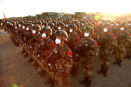 上午9時許,俄羅斯中部軍區司令亞歷山大·拉賓致辭,並宣佈聯合演習正式開始。俄羅斯軍樂團依次奏響各參演國國歌。