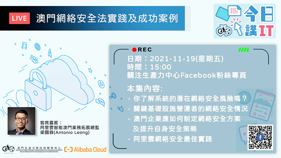 【特訊】澳門生產力暨科技轉移中心「今日講IT」直播節目,於11月19日(五)下午3時邀請到阿里雲嘉賓講解有關雲端存取使用資訊,歡迎有興趣人士參與及觀看。