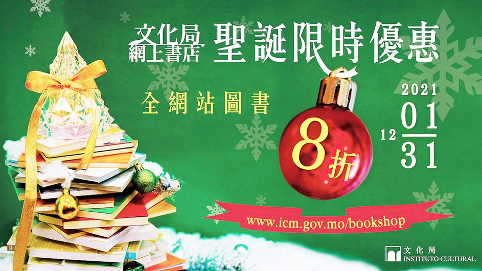 【特訊】為方便讀者經互聯網購買文化局出版物,進一步推廣閱讀風氣,文化局自去年推出網上書店服務。11月推出周年優惠反應良好,文化局為回饋各位讀者的支持,並共享聖誕佳節喜悅,將於12月1日至31日再次推出限時優惠活動,全網站所有圖書均可享有8折優惠。