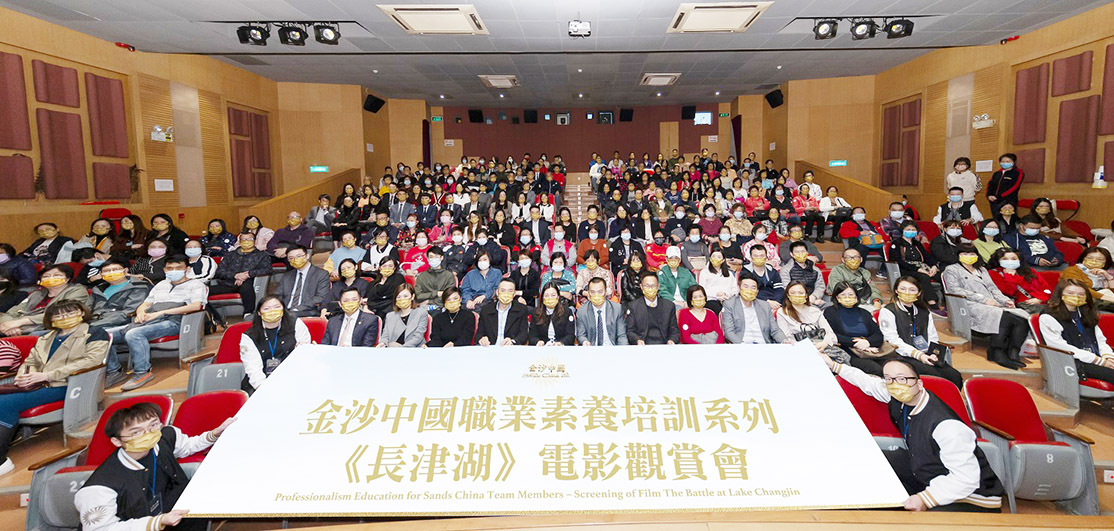 金沙中國有限公司總裁王英偉博士表示:「持續提高團隊成員的職業素養水平一直是金沙中國的首要重點,很高興透過舉辦是次《長津湖》電影觀賞會,加深團隊成員對祖國歷史及文化的了解及認識,讓他們在銘記歷史的同時燃起愛國情愫,繼續共同為支持祖國發展貢獻力量。」