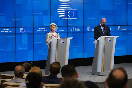 歐盟成員國領導人5月30日晚就對俄羅斯第六輪制裁達成一致,將立即禁止進口75%的俄羅斯石油,通過管道供應的石油暫時例外。在今年年底前歐盟從俄羅斯進口的石油將削減90%,以減少俄資金來源,給俄羅斯施以“最大壓力”結束俄烏衝突。