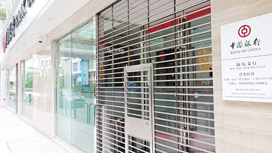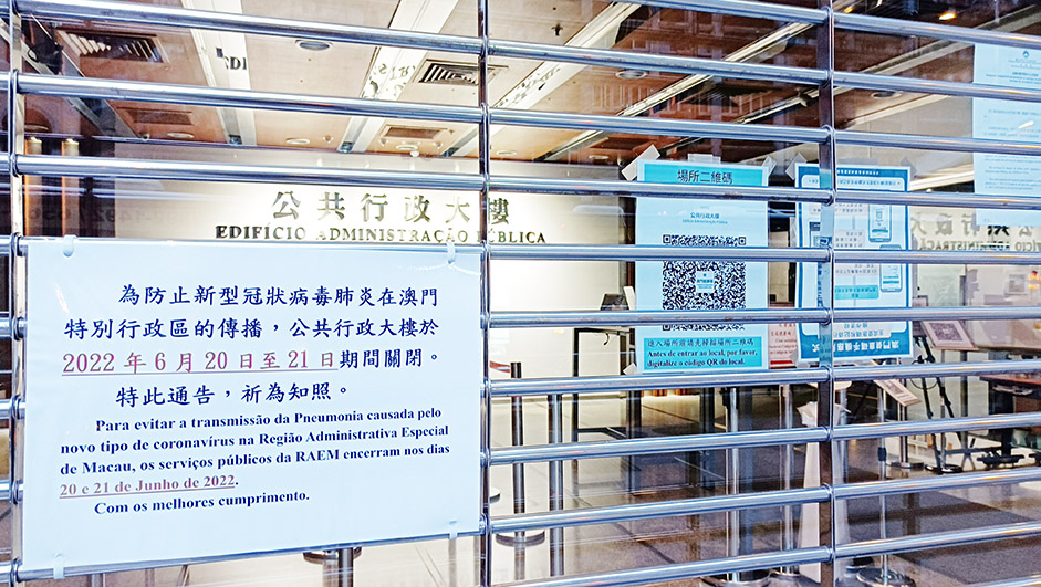 為配合防疫工作,除提供緊急及必需服務的部門外,昨日及今日公共部門暫停對外服務,在水坑尾的公共行政大樓,南灣財政局等對外部門落下鐵閘,門前上行政長官批示,中區不少銀行門市沒有營業,公園的設施亦被膠帶圍封,水坑尾南灣區平日人來人往,但昨日人流明顯比平時冷清,有市民表示,只會日常開支用錢,暫不會花費,而且目前疫情源頭不明,比較擔心,只會買菜才外出,除了口罩更戴防疫眼鏡。