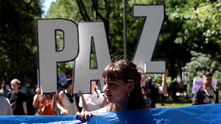 這次遊行由西班牙國家和平論壇召集,來自西班牙、德國、美國、古巴、委內瑞拉等國和一些國際組織的代表參加。記者看到,在長達上千米的遊行隊伍中,有年輕人,也有老年人;有懷抱嬰兒的婦女,也有行動不便的殘疾人。