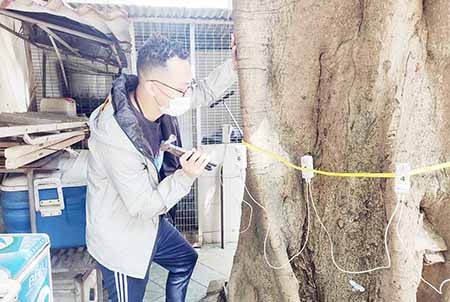 今年截至七月,市政署已檢查城市樹木共約16,400株,除了對樹木進行常規檢查的項目外,還因應樹木的結構狀況,使用樹木檢測儀器輔助,以檢查病危株空心及腐朽壞死程度,並結合人流、立地環境、樹木健康狀況、加固護理或施工安全等因素進行綜合評估,並制訂養護方案,處理一些受病蟲害或生長不良樹木。在每年風雨季前,市政署亦有序安排疏剪濃密樹冠,除去病枝、枯枝和結構撕裂的樹枝等工作,至七月份已修剪樹木超過7,400株,又為生長異常樹木進行救治,亦會為新植樹木安裝支撐架,並鋪設保護格柵覆蓋泥土。