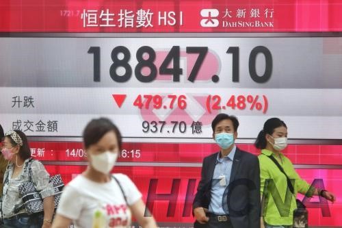 【新華社香港9月14日電】香港恒生指數14日跌479.76點,跌幅2.48%,收報18847.1點。全日主機板成交937.7億港元。