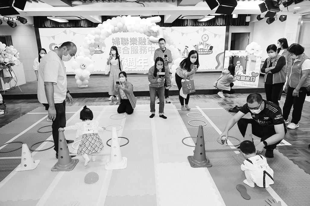 【特訊】婦聯樂融家庭綜合服務中心日前舉行「五周年開放日及新手父母服務指南」活動,現場設有幼兒感統體驗區、主題攤位和派發「新手父母服務指南」等環節,讓參與的親子家庭加深了解中心的發展,以及如何取得相應的家庭支援服務等,吸引逾二百人參與,場面溫馨熱鬧。