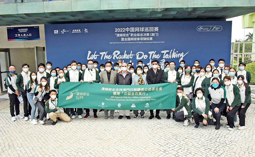 昨天,來自上葡京綜合度假村、新葡京、葡京、回力海立方、十六浦等合共逾700名團隊成員,與一眾管理層及義工隊成員身體力行參與了線下百萬行活動。此外,逾7,500名團隊成員及其親友以線上行方式響應,其中一隊從上葡京出發步行至澳門網球學校,為善的同時,亦為當天舉行的《2022中國網球巡迴賽「澳娛綜合」職業級總決賽(澳門)暨全國網球單項錦標賽》總決賽現場打氣。