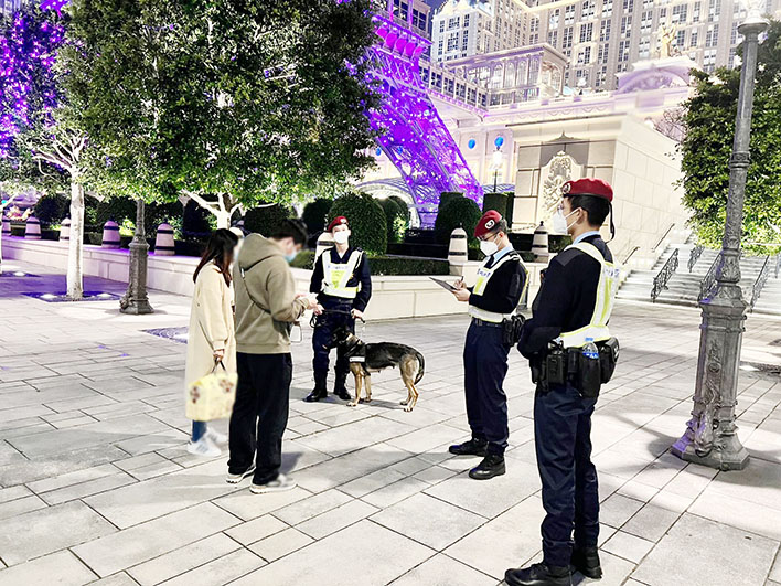 【特訊】在警察總局統籌下,治安警察局於前天(5)日開展「冬防行動2023」,確保本澳在歲晚及春節期間的良好治安環境。治安警察局轄下澳門警務廳、海島警務廳、交通廳、情報廳及特警隊聯同警犬組合共派出61名人員,分別在澳門各區巡查多間網吧,以及在路氹城金光大道娛樂場周邊一帶截查可疑人士,同時在各區進行查車行動,以預防及打擊各種不法行為和犯罪活動。