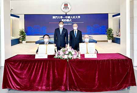 在澳門大學代校長許敬文及中國人民大學書記張東剛的見證下,澳門大學副校長馬許願及中國人民大學副校長杜鵬簽署《澳門大學——中國人民大學教育和科學合作備忘錄》。其後,兩校進行了“國際文化交流學術聯盟”及“世界人文社會科學高校聯盟”授牌儀式。在兩校交流座談會上,許敬文表示,中國人民大學一直是澳門大學重要的合作夥伴。
