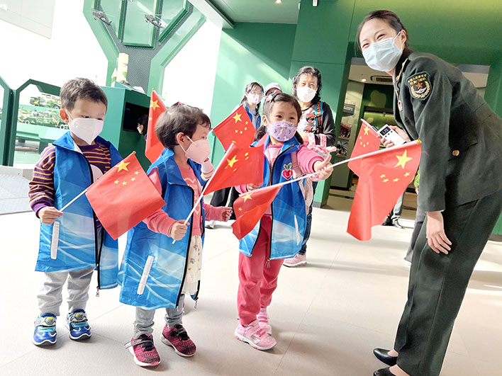 【特訊】為從小培養兒童愛國愛澳的精神,加強對祖國的認同感和民族自豪感,婦聯托兒所家長會日前組織屬下「婦托菁苗」小義工團隊,逾一百二十名親子參觀中國人民解放軍駐澳門部隊座落於氹仔軍營的軍事展覽館。