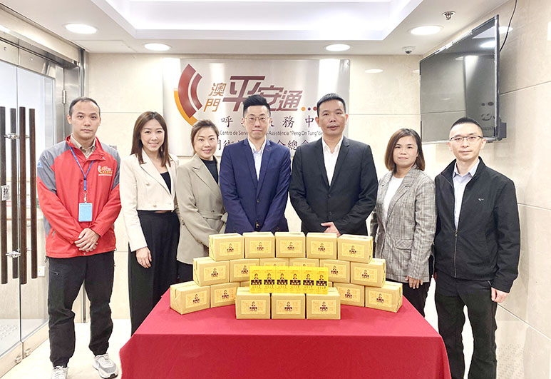 【特訊】張權破痛油中藥廠連續第二年向澳門街坊會聯合總會屬下澳門「平安通」呼援服務中心捐贈六百支「張權破痛油」。捐贈儀式昨天於澳門「平安通」呼援服務中心舉行,出席嘉賓包括張權破痛油中藥廠技術主管張樂祈、行政主任張寶祈、行政助理何嘉彤、澳門街坊會聯合總會理事長陳家良、社會服務辦公室協調主任梁詠恩、澳門社區義工聯合總會理事長鄧文基以及澳門「平安通」呼援服務中心經理潘嘉倫。