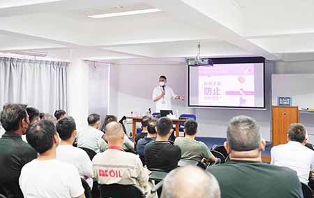 在講座期間,海事局與勞工局代表向碼頭業界和從業人員講解本澳的職安健法例,提醒預防工作意外的注意事項,包括安全使用起重機械及起重裝置、吊貨躉船作業安全等,對船隻登乘、貨物起卸存放、體力處理操作、個人防護裝備方面給予安全操作指引和意見,並強調透過加強集體與個人保護措施,可避免意外發生。同時,亦提醒碼頭業界從業人員在惡劣天氣下的工作安全,特別是在颱風期間,需要繫穩船隻和貨物,炎熱高溫天氣下工作應適當補充水份和休息,慎防中暑。