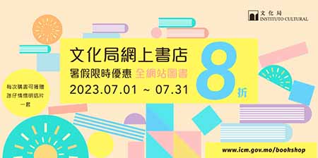 【特訊】文化局自推出網上書店服務以來,深受本地及外地讀者歡迎。為鼓勵莘莘學子善用暑假餘暇閱讀,透過閱讀吸取知識與豐富生活,文化局網上書店將於7月1日至31日推出暑假限時雙重優惠。網站所有圖書均可享有8折優惠,早期及近期出版的《文化雜誌》更分別享有5折及9折優惠。第二重優惠是凡於暑假優惠期間在文化局網上書店購買圖書(按每宗交易計算),均可獲贈氹仔情懷書籤乙套,多買多送,送完即止。