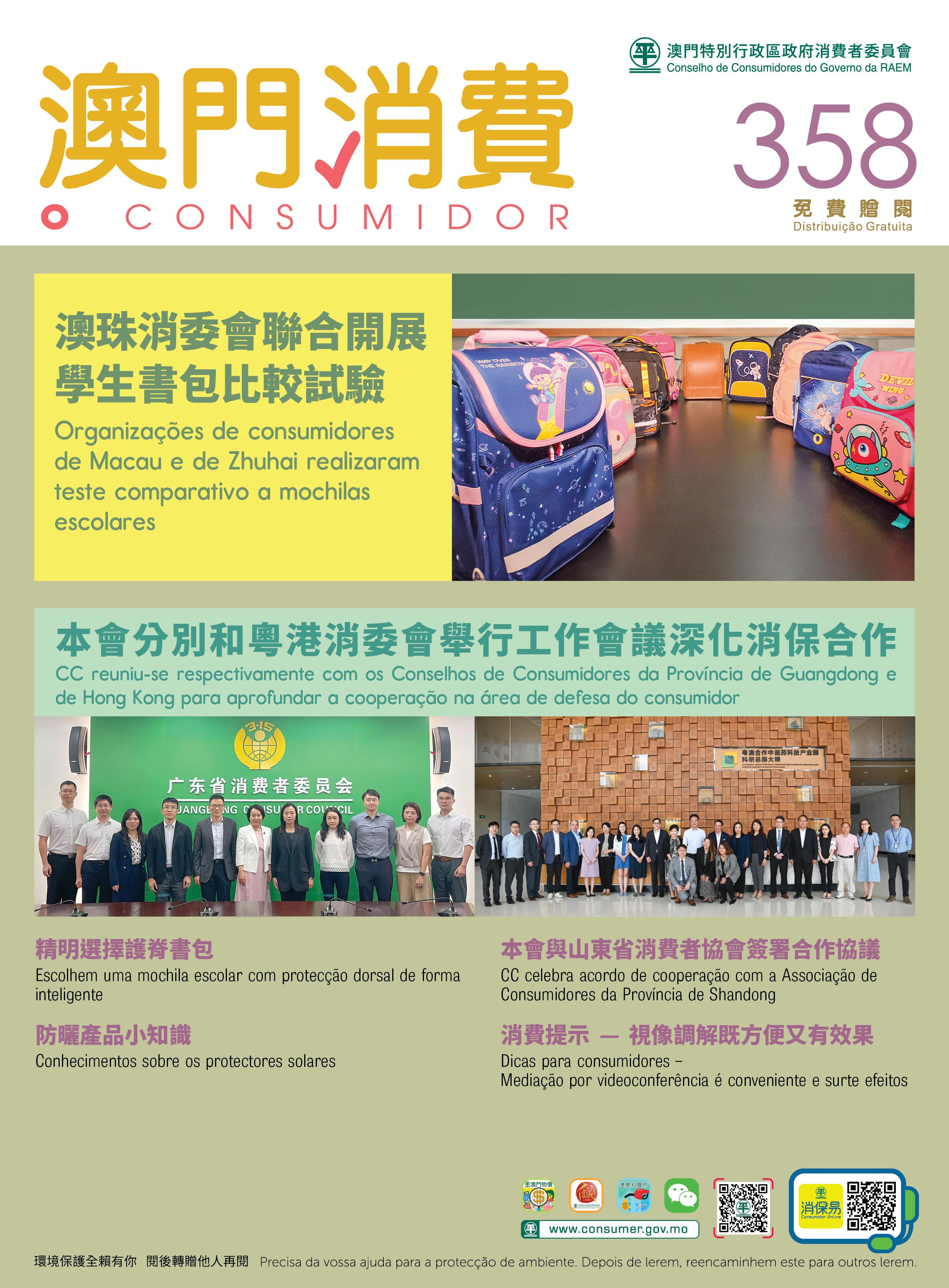 歡迎消費者登入消委會網頁(www.consumer.gov.mo)及微信(WeChat)帳號瀏覽新一期《澳門消費》。消委會查詢電話:8988 9315。