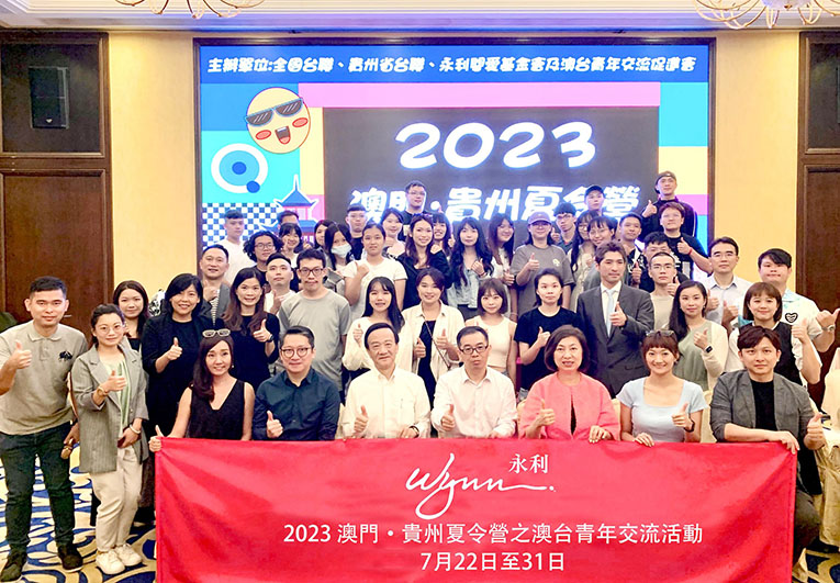 澳台青團還參觀了永利皇宮前台及後勤區,與管理層深入交流,了解國際級大型企業及探 討澳門龍頭產業的行業前景最新趨勢、探討如何加強澳台青年日後的工作實踐交流。 澳台青團隨後出發貴州遊歷學習,體現當地國家高速發展的成果,了解國家脫貧攻堅的成效,出生於台灣的永利關愛基金會行政委員倪孟正博士也隨團出發。活動期間,學員先出席由黔南民族師範學院承辦的「2023年全國台聯第二十屆台胞青年千人夏令營貴州分營」開幕禮。永利寄望學員們能夠繼續保持對學習的熱情和文化交流的精神,發揮自己的才能和知識,為兩岸和平及中華民族的繁榮和發展作出貢獻。