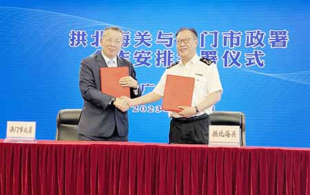 在國家海關總署的支持下,澳門市政署管理委員會主席戴祖義率代表團於八月八日赴珠海,與拱北海關關長詹少彤簽署《關於供澳門冰鮮水産品檢驗檢疫監管的合作安排》。兩地將聯合加强企業檢視、共同進行風險監測及開展技術交流。同時,實施創新的“三聯三同”安全監管合作模式,即“與企業聯動、與地方聯動、與澳門聯合”,並以“同企、同料、同線”的生產周期為監管單元,把監管及檢疫工作推前,既提升溯源管理,保障了冰鮮水産品的質量安全,也可實現口岸快速驗放,爲口岸通關便利創造了條件,進一步推動珠澳跨境貿易便利化。