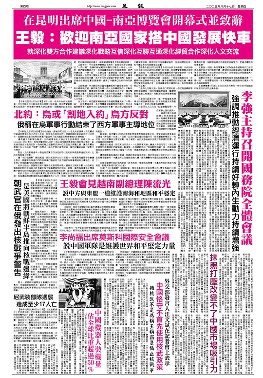 在昆明出席中國-南亞博覽會開幕式並致辭 王毅:歡迎南亞國家搭中國發展快車 就深化雙方合作建議深化戰略互信深化互聯互通深化經貿合作深化人文交流