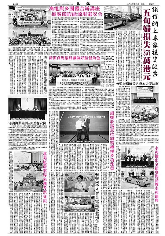 北美旅遊業界考察團於9月12至14日在澳門展開3天考察行程,先後走訪澳門世遺景點、路環氹仔及多個大型度假村的旅遊設施,並品嘗特色美食,體驗嶄新「旅遊+」元素,考察團使用港珠澳大橋接續到大灣區,以啟發業界代表構思遊歷澳門及「一程多站」旅遊項目,日後在北美市場上推出,促進多方旅遊交流及行業復甦,拓展澳門的長途客源市場,同時助力打造粵港澳大灣區世界級旅遊目的地。