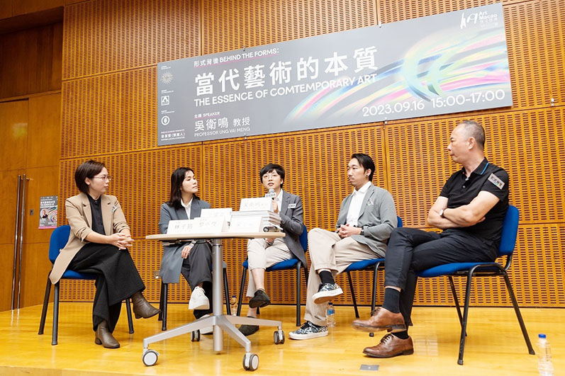 周六舉行的講座由《形式背後:當代藝術的美學》策展人梁潔雯主持。講座分為兩部分,第一部分吳衛鳴教授先從古代希臘文化和哲學入手,探索柏拉圖等哲學家的理念和當代藝術的關係;第二部分吳衛鳴教授對《形式背後:當代藝術的美學》展出的作品提出精闢見解,更與展覽的年青藝術家黎小傑和梁子毛、藝術統籌林子筠及策展人梁潔雯進行學術對談,與觀眾共同探問當代藝術的本質。