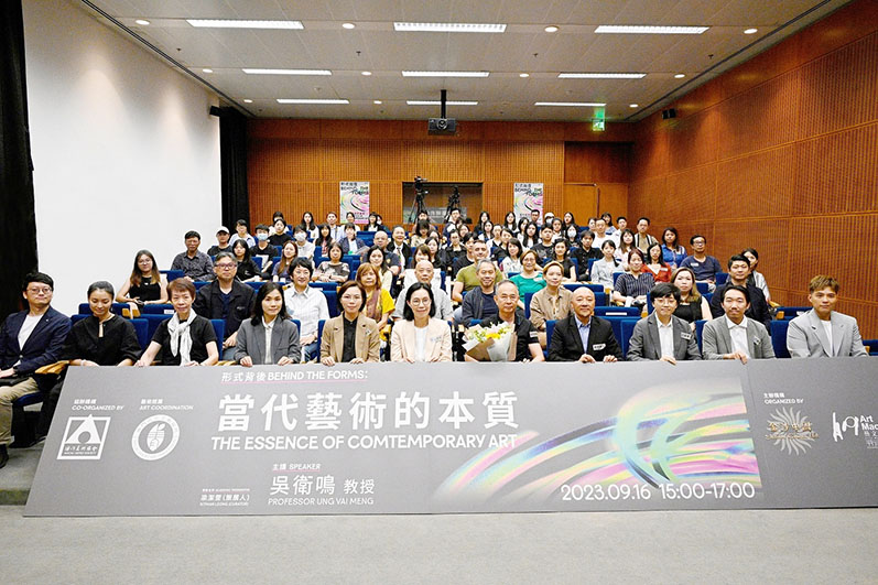 【特訊】為響應及全力支持澳門特區政府主辦的「藝文薈澳:澳門國際藝術雙年展2023」,金沙中國有限公司周六於澳門藝術博物館演講廳舉辦「形式背後:當代藝術的本質」講座,邀請本澳藝術界重量級學者兼本地藝術家吳衛鳴教授擔任主講嘉賓。活動吸引逾百名包括本地藝術家、高等院校藝術系的學生以及公眾在內的人士參與。