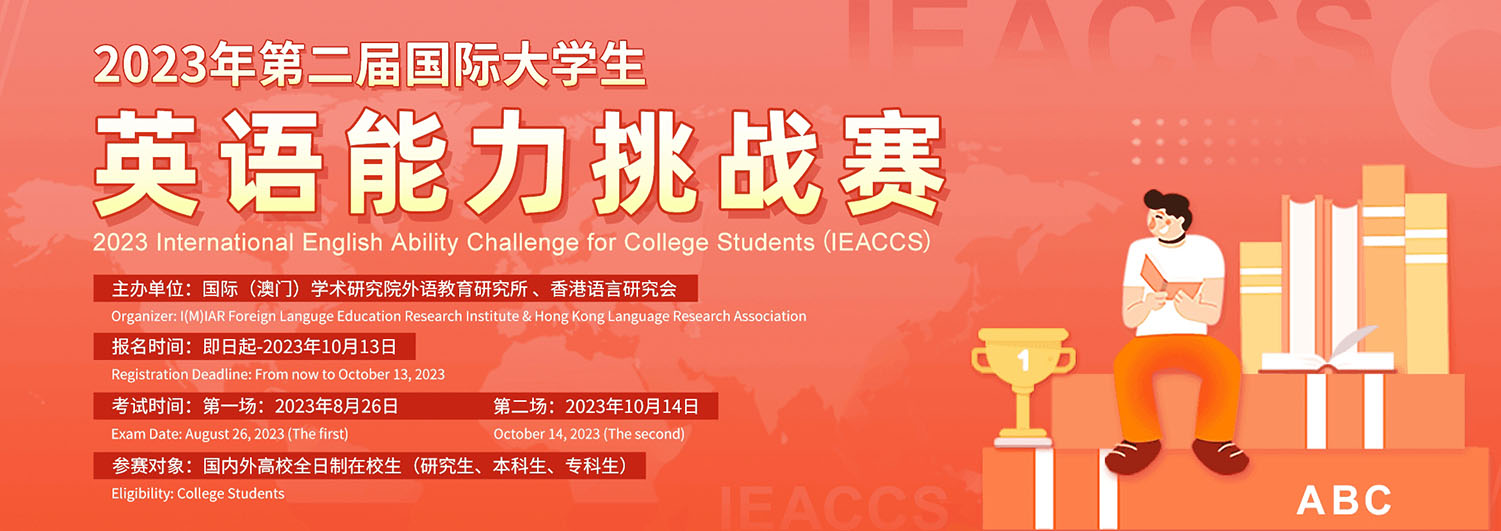 【特訊】國際(澳門)學術研究院外語教育研究所與香港語言研究會聯合舉辦「2023年第二屆國際大學生英語能力挑戰賽」(International English Ability Challenge for College Students,簡稱IEACCS),賽事現正接受報名。