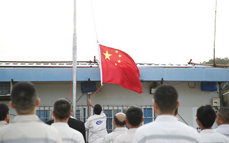當地時間29日早晨,中國駐瑙魯使館復館小組在位於瑙魯島西南部的臨時辦公地點舉行升國旗儀式。