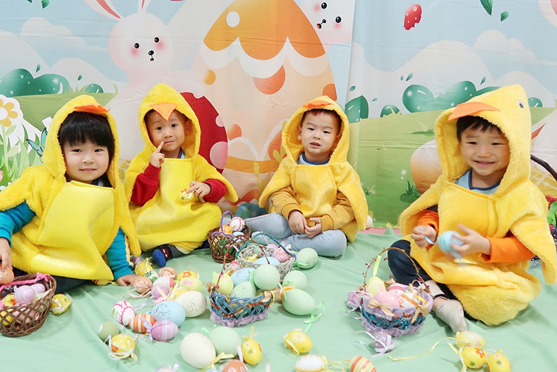 細心引導著幼兒們將他們的創意融入到復活蛋的繪畫中,製作出七彩繽紛、獨一無二的復活蛋,藉此啟發他們創造力和能力;幼兒們穿上趣緻可愛的動物套裝,歡快地高唱著Which came first等歌曲,更帶領著幼兒們踏上一場尋找藏在角落中的復活蛋的奇妙旅程,讓幼兒們互相合作,同時培養他們的觀察力和解決問題的能力。