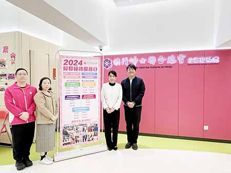 四月份婦聯接待服務日將於本月八日(週一)及九日(週二)當晚,分別在位於氹仔湖畔大廈的婦聯樂滿家庭服務中心、水坑尾的婦聯樂融家庭綜合服務中心舉行,歡迎有需要的會員及居民可於辦公時間內致電二八三五•四四五四或六二三八•九八七八諮詢或預約。