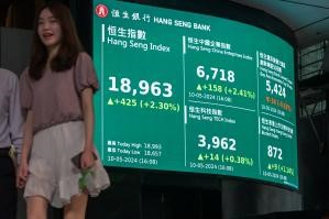 【新華社香港5月10日電】 香港恆生指數10日漲425.87點,漲幅2.3%,收報18963.68點。全日主板成交1710.01億港元。