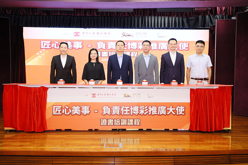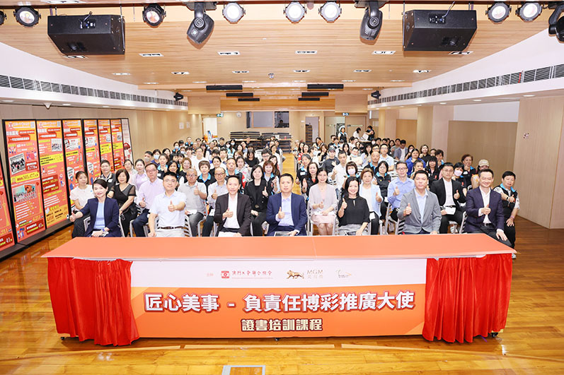 澳門工聯總會、美高梅及博彩業職工之家綜合服務中心參考了現時博彩從業員賭博失調預防工作的成功經驗和模式,以加深各行業職工對負責任博彩的認識、建立各行業預防賭博失調的安全網、同心構建健康和諧的社會環境為目標,於6月22日假工聯大廈禮堂合辦「匠心美事-負責任博彩推廣大使」證書培訓課程。該課程為全澳首個面向各大行業從業員的負責任博彩培訓,由澳門大學博彩研究所所長馮家超和博彩業職工之家綜合服務中心主任白建邦擔任導師,向150名來自於工聯轄下八大行業系統工會的骨幹成員、志願者及市民授課,講解負責任博彩政策推行的重要性、本地賭博失調防治的措施以及推動受賭博困擾人士主動求助。參與培訓的八大系統工會包括:建造業總工會、製造業總工會、商業僱員總會、服務業總工會、交通運輸業總工會、公務人員聯合總會、文職人員總會以及博彩企業員工協會。