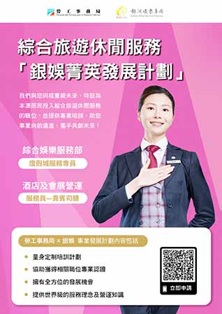 【特訊】為支持本地人才全面發展,拓展多元職涯路向,勞工事務局和銀河娛樂集團合作推出“銀娛菁英發展計劃(綜合娛樂服務及酒店營運範疇)”,以“先入職、後培訓”方式,為有志投身綜合休閒旅遊服務行業的澳門居民提供全方位培訓及發展階梯,計劃由8月13日起接受申請。