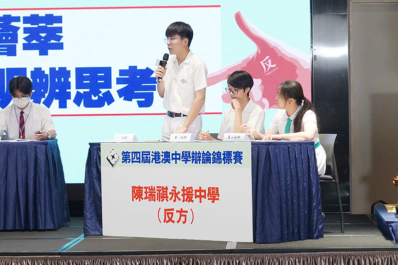 【特訊】由星島日報及澳門演辯學會聯合主辦,香港語文教育及研究常務委員會(語常會)、伯恩光學(香港)有限公司及澳門基金會贊助,「第四屆港澳中學辯論錦標賽」在香港將軍澳工業邨數據技術中心舉行。賽事結果由陳瑞祺永援中學及教業中學組成的澳門代表隊擊敗香港代表隊,為澳門首次贏得賽事總冠軍寶座,陳瑞祺永援中學陳岳濠獲頒最佳辯手獎項。澳門演辯學會主席林鎮昇表示,是次佳績創澳門回歸以來有系統的港澳中學辯論賽中澳門最好的成績。