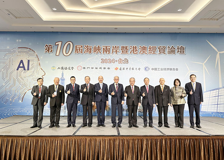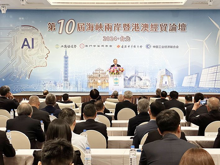 【特訊】由中國工業經濟聯合會、台灣工商協進會、澳門中華總商會和香港中華總商會共同主辦,由台灣工商協進會承辦的第十屆「海峽兩岸暨港澳經貿論壇」日前在台北市成功召開。論壇以「十屆有成 攜手向前」為主題,彙聚了海峽兩岸暨港澳工商界領袖,共同分享與探討新形勢下四地經貿合作與產業融合發展的成效、挑戰與機遇。澳門中華總商會副理事長黃國勝率領一行十人的代表團赴台參加論壇。