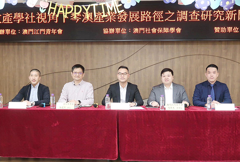 由澳門江門青年會主辦、澳門社會保障學會協辦之「政產學社視角下琴澳產業發展路徑之調查研究」,於去年八月至十一月進行,主辦單位昨日舉行新聞發佈會,江門青年會會長夏俊英、理事長馮偉杰、監事長黎正文、秘書長甘智光、澳門社會保障學會會長陳建新等出席公佈調研結果。據悉,是次調查研究主要是探究受訪者對橫琴的認識了解、琴澳產業政策措施了解,前往橫琴發展的預期行為,以澳門高校學生為樣本共收集了五百二十四份有效問卷,並增加焦點小組討論及精英訪談作為研究補充。