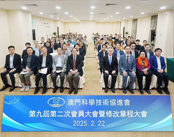 【特訊】澳門科學技術協進會於2025年2月22日下午6時在澳門勵庭海景酒店多功能廳舉行第九屆第二次會員大會暨修章大會。大會由會長崔世平主持,理事長邵漢彬作理事會工作報告,財務長梁耀明作財務報告,監事長許敖敖作監事會報告。