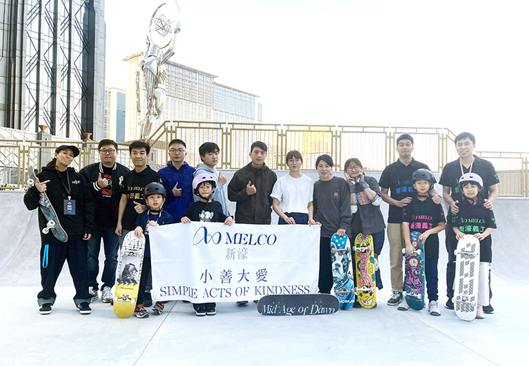 「新濠社區滑板體驗日」由新濠聯同FISE攜手合辦,並獲新濠親子義工隊支持,邀得約30名來自本地社區合作夥伴的青年及家庭參與,包括鮑思高青年服務網絡、聖公會澳門社會服務處-星願居及工聯台山社區中心。
