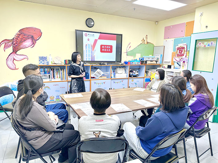 澳門中銀沙梨頭分行代表傳遞親子理財屬家庭教育的重要性,向家長分享親子理財的正確認知。從小培養子女健康的消費習慣,以及正確的理財方式與工具;對長大後保持財務穩健有著關鍵作用,而且可以加強防騙反詐的能力,對家庭關係亦起著促進作用。