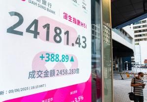 【新華社香港6月9日電】香港恒生指數9日漲388.89點,漲幅1.63%,收報24181.43點。全日主機板成交2458.28億港元。